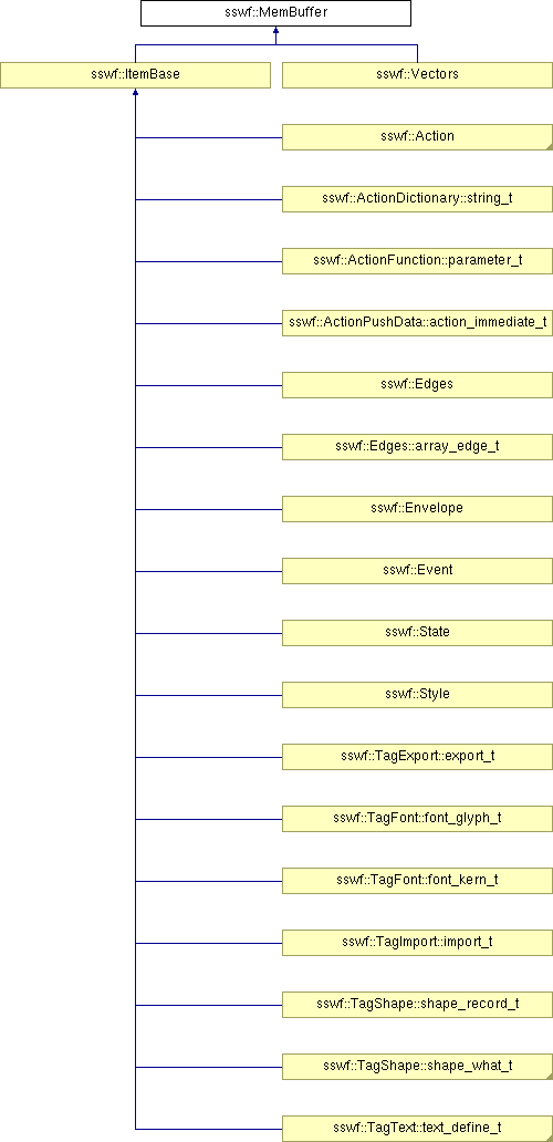 The idea is to derive new classes from MemBuffer. These classes can then be managed by an sswf::MemoryManager. This is necessary for items put in vectors, the vectors themselves and a few othe objects which would otherwise not be managed.